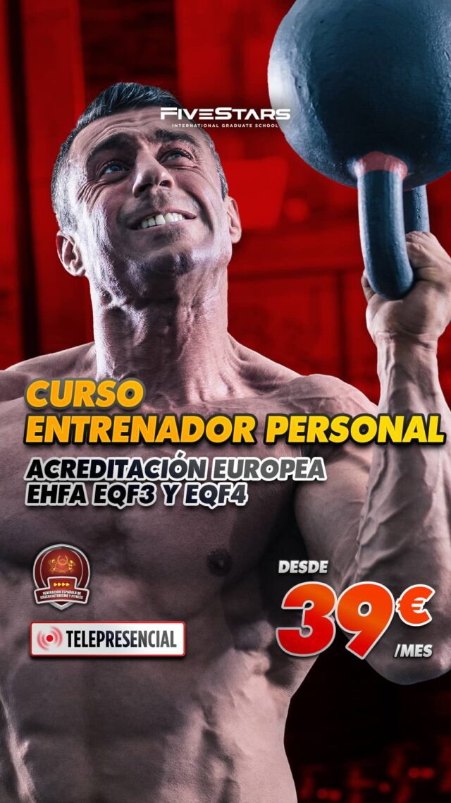 ⭕CURSO DE ENTRENADOR PERSONAL ⭕ Recomendado por FEFF, impartido por FiveStars International Graduate School. Telepresencial, 100% en directo. Con profesores MEDALLISTAS OLÍMPICOS, ATLETAS CAMPEONES DEL MUNDO E INVESTIGADORES EN CIENCIAS